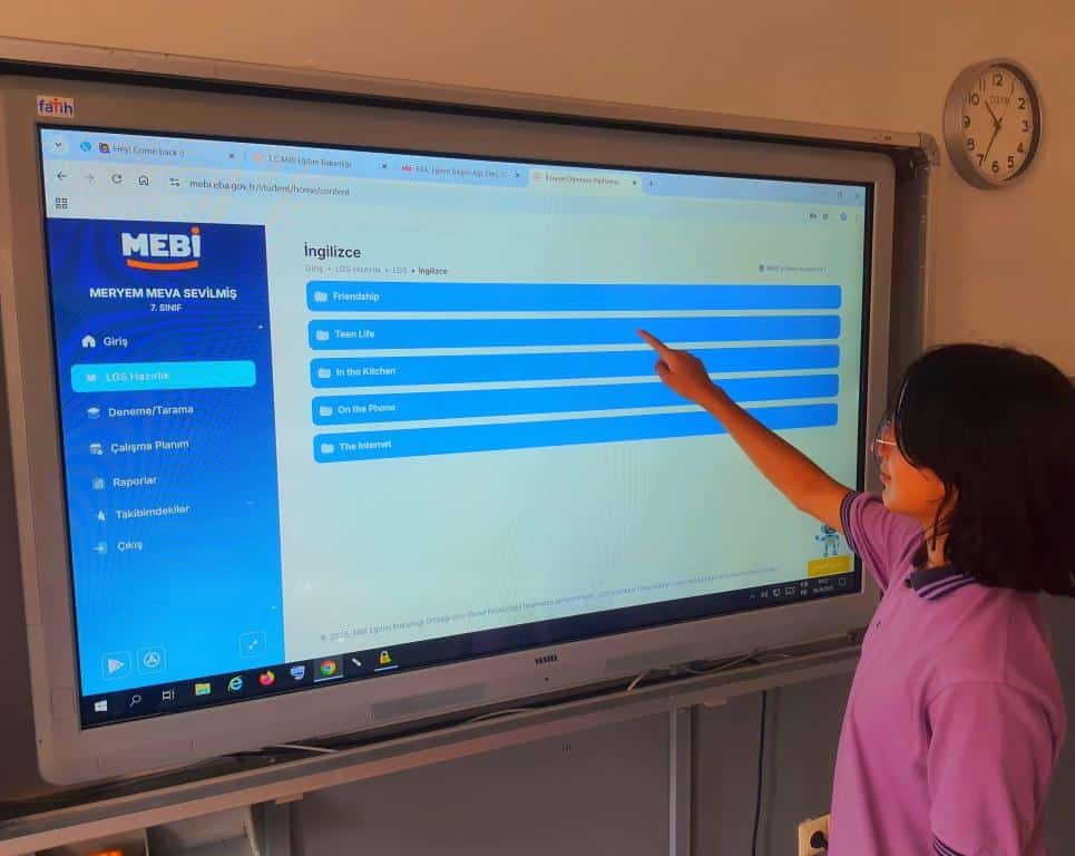 Öğrencilerimizin bilgi, yetenek ve deneyimlerinin dikkate alınarak "öğrenmenin kişiselleştirildiği", Bakanlığımızca geliştirilen dijital öğrenme platformu "MEBİ" tüm sınıflarımızda. MEBİ Dijital Öğrenme Platformu tüm sınıflarımızda öğrencilere tanıtılmış ve EBA Kişisel şifreleri ile kullanımı konusunda tanıtım videoları izletilmiş ve tam içerikleri hakkında gerekli bilgilendirmeler yapılmıştır.